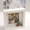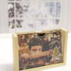Envelope kraft com placa de acrílico dourado.